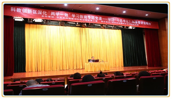黨課主講老師是蘇州市委黨校經濟教研室主任--王濤教授。王濤教授以馬克思的一段話作為本次學習的開端,以三代領導核心:毛澤東,鄧小平,習近平的重要思想深入了本次學習的主題。講座從多方面、多角度闡釋習近平總書記7·26重要講話精神,并探討了習近平總書記7.26重要講話的實踐基礎和未來展望。
