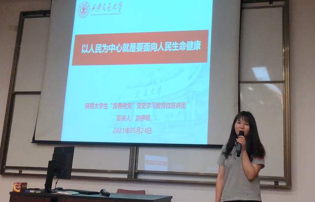 醫學部公共衛生學院研究生劉伊明同學從醫療與人民健康層面進行宣講。她以建國初期危害廣大人民群眾生命安全的血吸蟲病防治措施為例,介紹了我們國家團結一心,以獨特的治理模式達成的突出成就。公共衛生事業發展史是我們黨帶領人民進行社會主義事業發展史的一個縮影。全球疫情的沖擊下,人民高于一切,生命重于泰山。我們尋著革命前輩的足跡,在我們黨和政府的領導下一樣能戰勝新冠肺炎,共同續寫中華民族新的偉大傳奇!