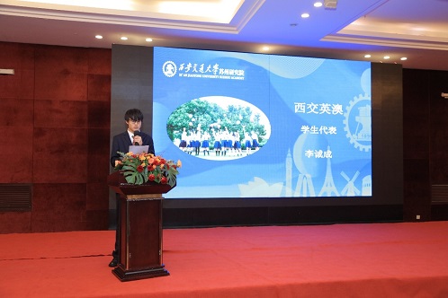 國際本科單韻菲老師、國際本碩預科MR.MUZAMBI 老師以及西交英澳新生代表李誠成、國際本科學生代表滕馳、國際本碩預科學生代表蔡宇冰分別發言。他們從不同角度講述了自己對留學、課堂生活與新生生活的感想。