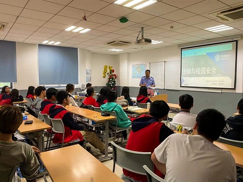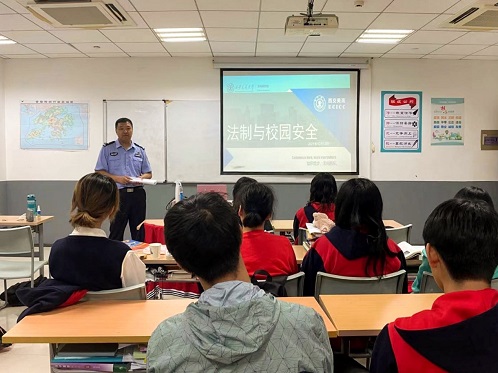 為進一步增強在校師生法制觀念和安全意識,共創校園安全良好環境,2021年10月,西安交通大學蘇州研究院國際高中課程中心的課堂里迎來了一名特殊的教師:蘇州市公安局單位內部安全保衛支隊五大隊大隊長陳波。陳大隊結合典型案例,以通俗易懂的形式,先后為西交美高、西交英澳的學生帶來了兩期精彩的《法制與校園安全》主題講座。