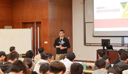 伴隨著同學們熱烈的掌聲,史鵬開始了他的分享。他指出學校學習與企業(yè)工作之間存在著認知差異,需要同學們及時做出從校園到職場的思維轉(zhuǎn)變;通過哈佛大學的一項研究案例,深入淺出的闡述了職業(yè)規(guī)劃的重要性,進而啟發(fā)大家對職業(yè)目標的思考。他引用了SWOT分析方法,幫助同學們更好的認識自己,并真切地分享了個人數(shù)十年的職業(yè)經(jīng)歷,包括對職場選擇、個人奮斗等話題的深刻感悟。
