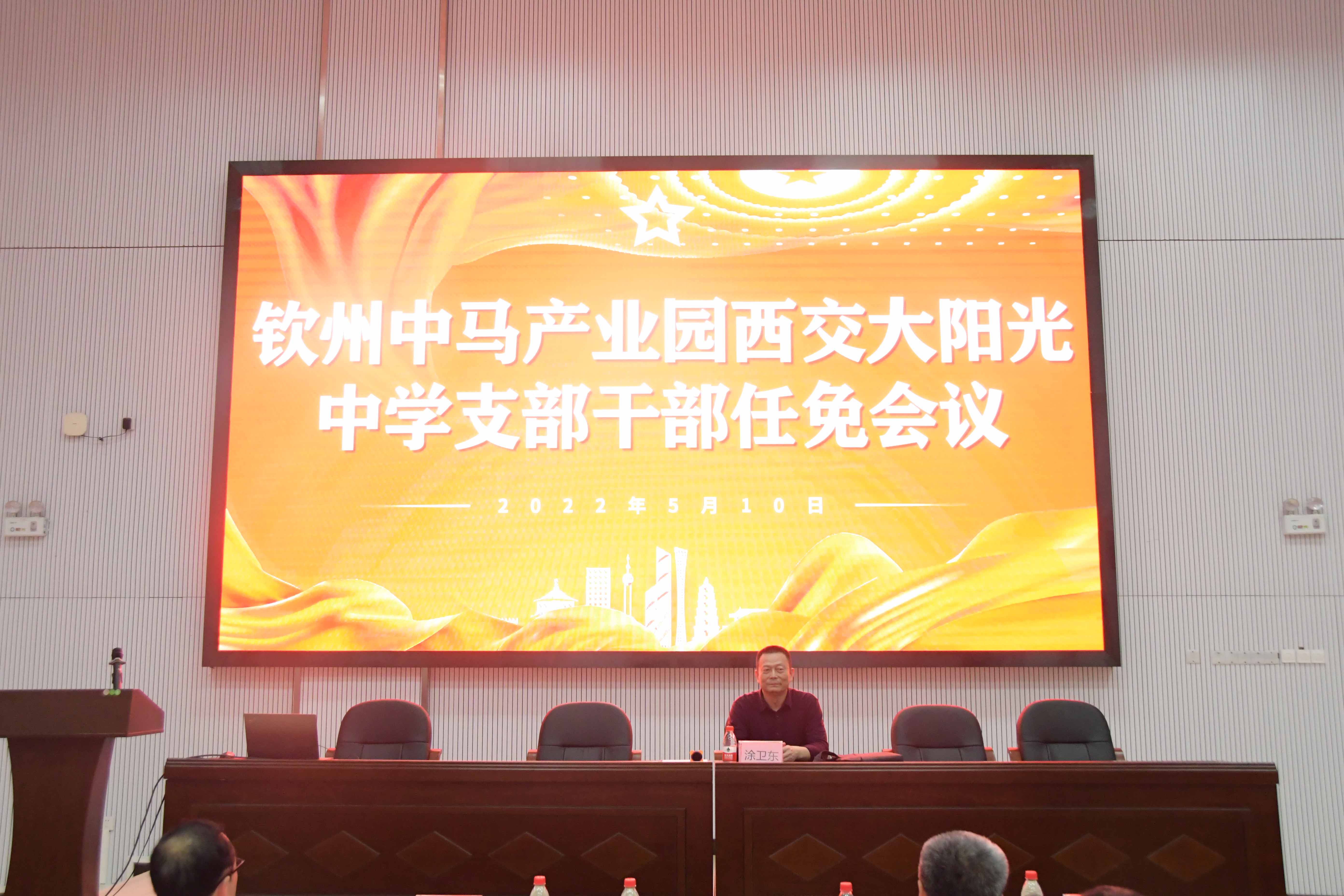 2022年5月10日,西交大中馬陽光學校召開了干部任免的會議。中馬產業園投資控股集團黨委辦公室顧問涂衛東同志,代表集團黨委宣布李季同志的任職通知。經黨委研究決定,李季同志任中共欽州中馬產業園西交大陽光中學支部書記。