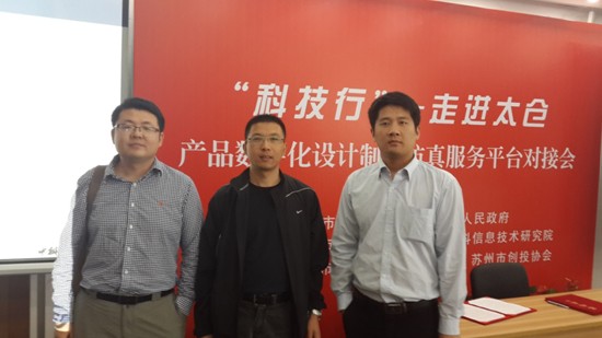 2014年5月9日,由蘇州市科技局與太倉市人民政府主辦的“科技型”—走進太倉,產品數字化設計制造仿真服務平臺對接會在太倉舉辦,我院科技發展部常務副主任張翼,科技主管何斌華與蘇州3D打印重點實驗室的研究人員一同參加了此次對接活動。