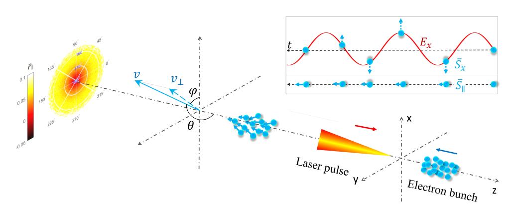 圓偏振超強(qiáng)激光-電子束非線性Compton散射過(guò)程中螺旋度傳遞過(guò)程示意圖