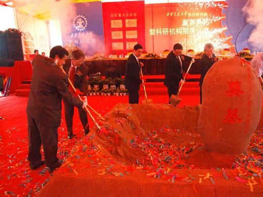 在蘇州市、蘇州工業(yè)園區(qū)和獨(dú)墅湖高教區(qū)的大力支持下,西交大蘇研院還合作創(chuàng)辦了多個(gè)高水平的科研平臺(tái),如:快速制造國(guó)家工程研究中心蘇州中心、電力設(shè)備電氣絕緣國(guó)家重點(diǎn)實(shí)驗(yàn)室蘇州研究中心、西安交通大學(xué)現(xiàn)代生物納米制藥技術(shù)蘇州研究所、西安交通大學(xué)智能檢測(cè)與診斷技術(shù)蘇州研究所和西安交通大學(xué)管理與政策蘇州研究所等。2006年西安交大蘇研院被蘇州市確認(rèn)為內(nèi)資引進(jìn)研發(fā)機(jī)構(gòu)。奠基儀式上,席酉民教授和朱永新市長(zhǎng)共同為上述五個(gè)科研機(jī)構(gòu)揭牌。