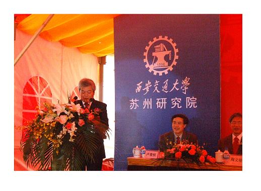 5月24日上午,西安交通大學(xué)蘇州研究院校園奠基典禮暨科研機(jī)構(gòu)揭牌儀式在蘇州獨(dú)墅湖高等教育區(qū)隆重舉行。這標(biāo)志著西安交通大學(xué)蘇州研究院的發(fā)展又進(jìn)入了一個(gè)新階段。西安交通大學(xué)副校長(zhǎng)席酉民教授、西交利物浦大學(xué)校長(zhǎng)陶文銓院士、中國(guó)工程院院士盧秉恒教授、蘇州市副市長(zhǎng)朱永新、蘇州市政府副秘書長(zhǎng)董宙宙、蘇州市教育局副局長(zhǎng)高國(guó)華、園區(qū)工委副書記潘云官、英國(guó)利物浦大學(xué)副校長(zhǎng)方大慶教授、高教區(qū)管理辦公室主任葉峰等出席了奠基儀式。 西安交通大學(xué)蘇州研究院是西安交通大學(xué)派出的管理、科研機(jī)構(gòu)和教育實(shí)體,是蘇州市人民政府和西安交通大學(xué)聯(lián)合共建的教育科研事業(yè)單位。2003年3月,西安交大蘇州研究院成立。蘇州研究院的主要任務(wù)是幫助西安交通大學(xué)在蘇州建設(shè)中外合作辦學(xué)基地、教育培訓(xùn)基地、科學(xué)研究基地和科技成果轉(zhuǎn)化基地。