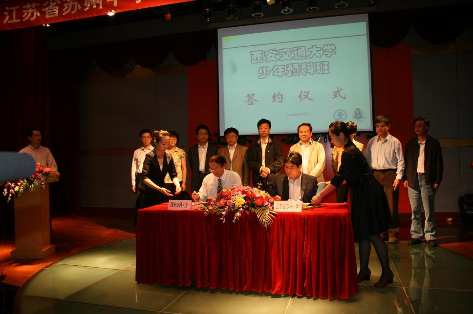 西安交通大學是首批進入“國家教育振興行動計劃”“建設的9所大學之一,也是目前國內經教育部批準、可以招收少年班的2所高校之一,有著20年的少年班招生歷史。通過舉辦少年班,可以選拔智力超常且未超過15周歲的少年,實行“預科—本科—碩士”8年一貫制培養模式,為國家培養拔尖人才。經過對江蘇省蘇州中學的認真考察,西安交大決定將少年預科班落戶在這所具有千年辦學淵源、百年教學經驗的國家級重點中學,這是西安交大第一次在異地舉辦的的少年預科班。