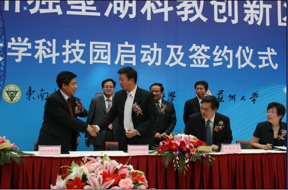 為加強與高校的合作,推進產學研發展,蘇州市委、市政府決定將蘇州獨墅湖科教創新區創建成為國家級大學科技園區。我校國家大學科技園(蘇州)、東南大學國家大學科技園(蘇州)和蘇州大學科技園,成為區內首批建設的三家大學科技園,在中新蘇州工業園區15周年慶典之時,全面啟動運行。