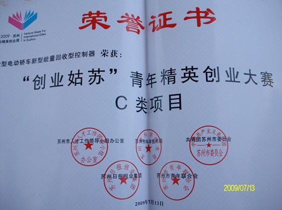 值得一提的是,由我院電動汽車與控制技術實驗室的博士生武小蘭領頭的學生創(chuàng)業(yè)隊伍,其他成員包括王占彬、張立、曹志通、侯哲四位碩士生,他們所參賽的項目“微型電動轎車能量回收型控制器”獲得了C類獎,獲獎金5萬元。