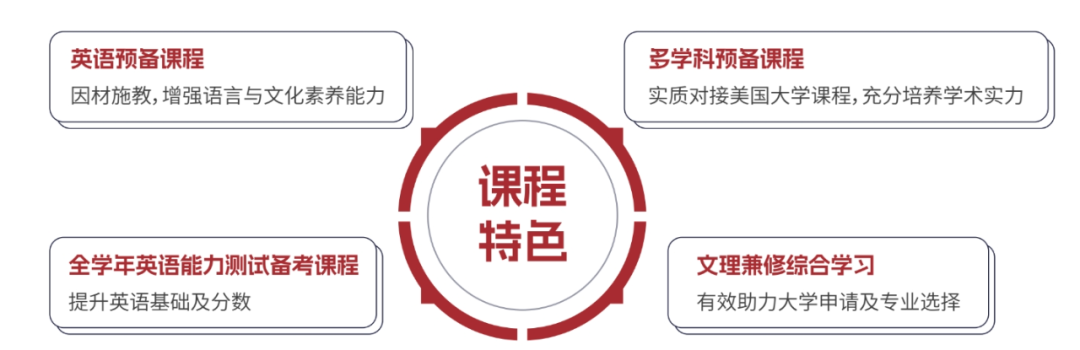2024年,斬獲多枚包括曼徹斯特大學、布里斯托大學、杜倫大學、伯明翰大學、英國皇家音樂學院、市政廳音樂戲劇學院、北方皇家音樂學院、悉尼科技大學、皇家墨爾本大學等世界前百頂尖名校錄取!項目目前開設英澳新國際預科班(NCUK國際預科/新南威爾士國際預科)、2+2/1+2海外名校學分豁免定向班(NCUK國際大一)、OSSD多國名校聯升班、中新優才班、中美優才班、新加坡學分互認班、馬來西亞國際方向班、國際藝術班(英/澳/新/香港)。課程靈活多樣,廣大學子可根據自己的需求選擇在國內就讀一年或者兩年的課程后直接申請海外名校。