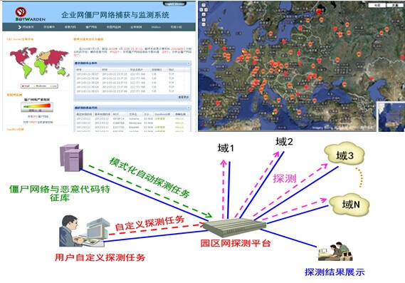 ????????蜜網(wǎng)與僵尸絡檢測系統(tǒng)HBDS是一套集蜜網(wǎng)技術、惡意代碼分析、僵尸網(wǎng)絡檢測為一體的全方位僵尸網(wǎng)絡安全產(chǎn)品。該系統(tǒng)能檢測監(jiān)控內(nèi)部僵尸網(wǎng)絡情況,而且能夠探測和估計已知僵尸網(wǎng)絡在全世界的分布規(guī)模。