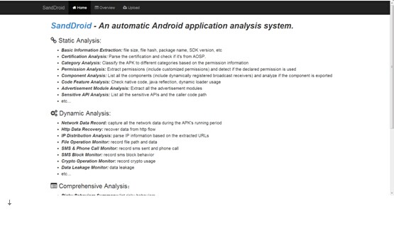 ????????Sanddroid系統(tǒng)幫助Android用戶分析軟件的安全性。該系統(tǒng)使用便捷,用戶只需上傳APK文件, Sanddroid完全自動化分析,并以Web頁面的方式為用戶提供文件的安全性分析報告。Sanddroid全面融合多種檢測方法,綜合判定,檢測效率高,準確度高,目前已經(jīng)被全球94個國家和地區(qū)訪問,檢測惡意代碼累計達到4萬多個。